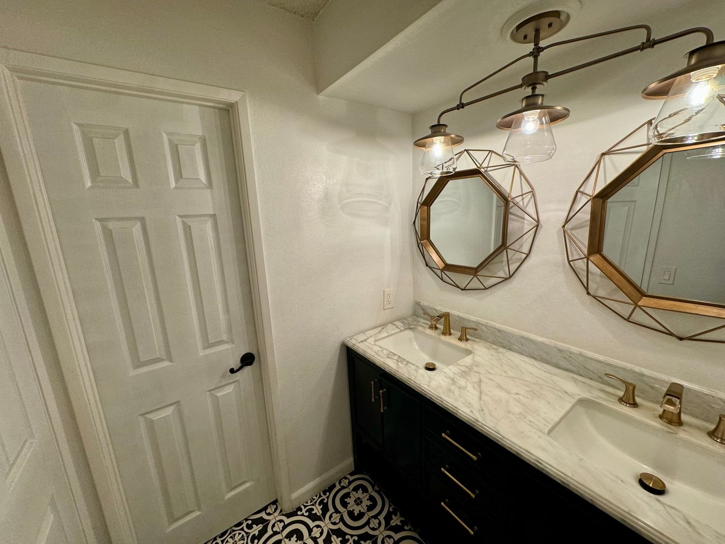 • Custom cabinetry with modern gold hardware